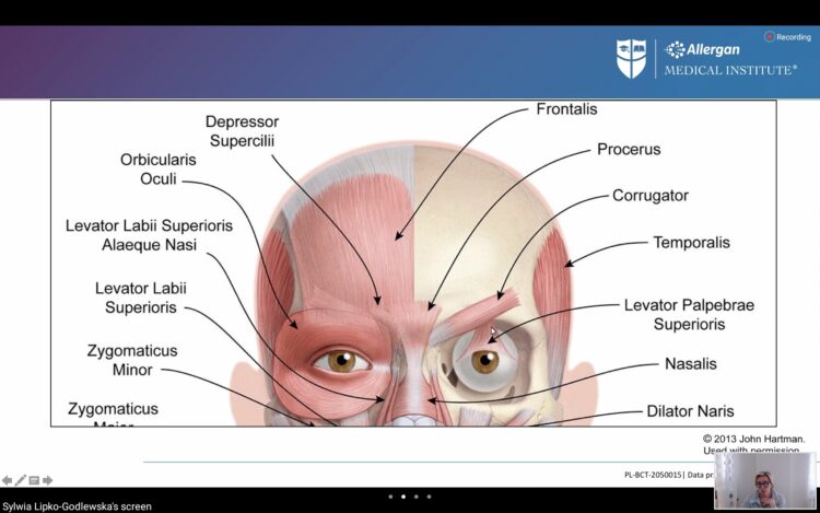 Dr Sylwia Lipko-Godlewska, trener AMI, 23 kwietnia poprowadziła szkolenie: „BOTOX® (toksyna botulinowa typu A) w leczeniu górnej części twarzy”. I kolejny raz, mimo że wykonuję iniekcje od dawna, praktykuję prawie codziennie (praktykowałam 😉 bo teraz wszystko na głowie jest postawione przez COVID ) – znowu miałam ochotę krzyknąć: „ Eureka! – tak nie robiłam, to zmienię, teraz rozumiem lepiej!”
