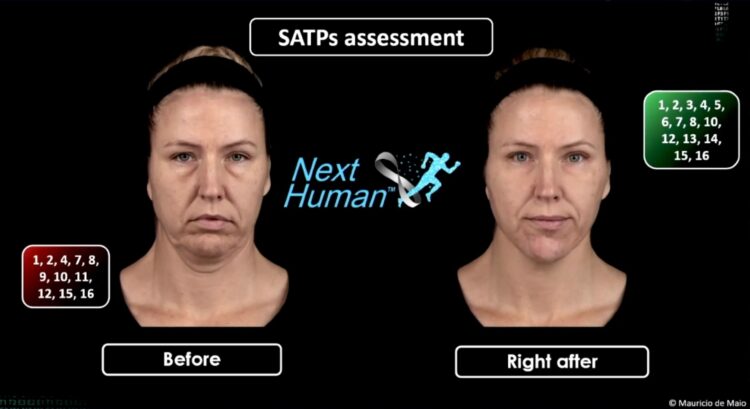 16 punktów widocznych na skórze, pojawiających się w wyniku ubytków tkanek miękkich (tzw. SATPs- Surface Aging Trigger Points). Gdy leczymy je wspólnie, ze zrozumieniem, mamy wpływ na miomodulację, czyli pracę wszystkich mięśni twarzy.  Są też tzw. BATPs- Bone Aging Trigger Points – 8 kluczowych zmian w kościach twarzoczaszki, które zbadamy palpacyjnie i także „wyprowadzimy” stosując MD Codes. Technicznie nie chcę Was zanudzać, ale zrozumienie tej integralności, pozwala uzyskiwać spektakularne efekty.